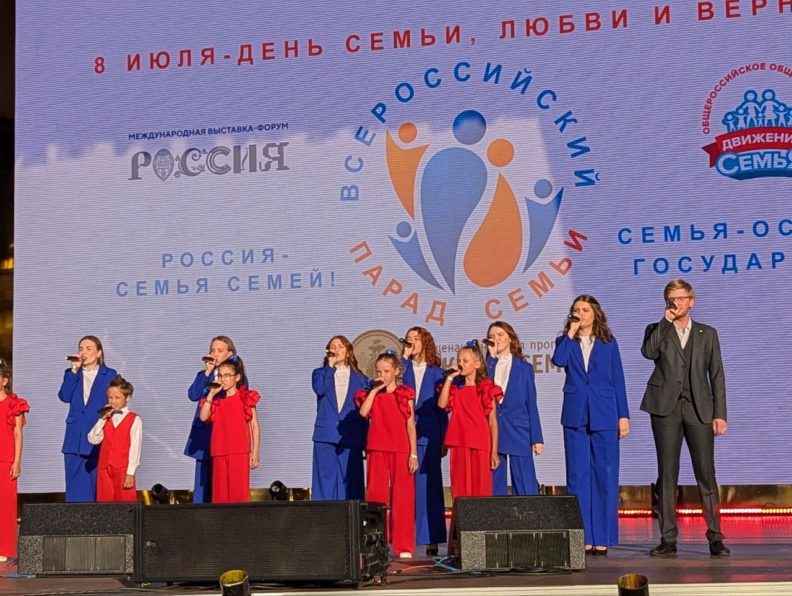 Вечером на сцене проходит праздничный концерт, приуроченный к закрытию выставки-форума «Россия». После того как шествие пришло к сцене, молодых и веселых ведущих заменяет бывшая сотрудница Владимира Соловьева, журналистка православного медиа «Царьград» Анна Шафран: «Парад семьи ждали миллионы семей без преувеличения. Совсем недавно, давайте скажем откровенно, он казался совсем невозможным, но сегодня не только в Москве, но и в более чем ста городах нашей страны, приходят люди. Ведь семья — безусловно будущее России. И главная цель нашего парада это укрепление и сохранение традиционных семейных ценностей».