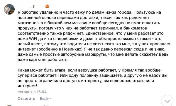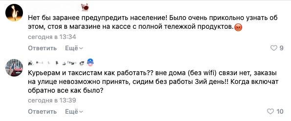Критические проблемы возникают у регионального бизнеса — служб такси и доставки, которым для работы необходима связь с курьерами.