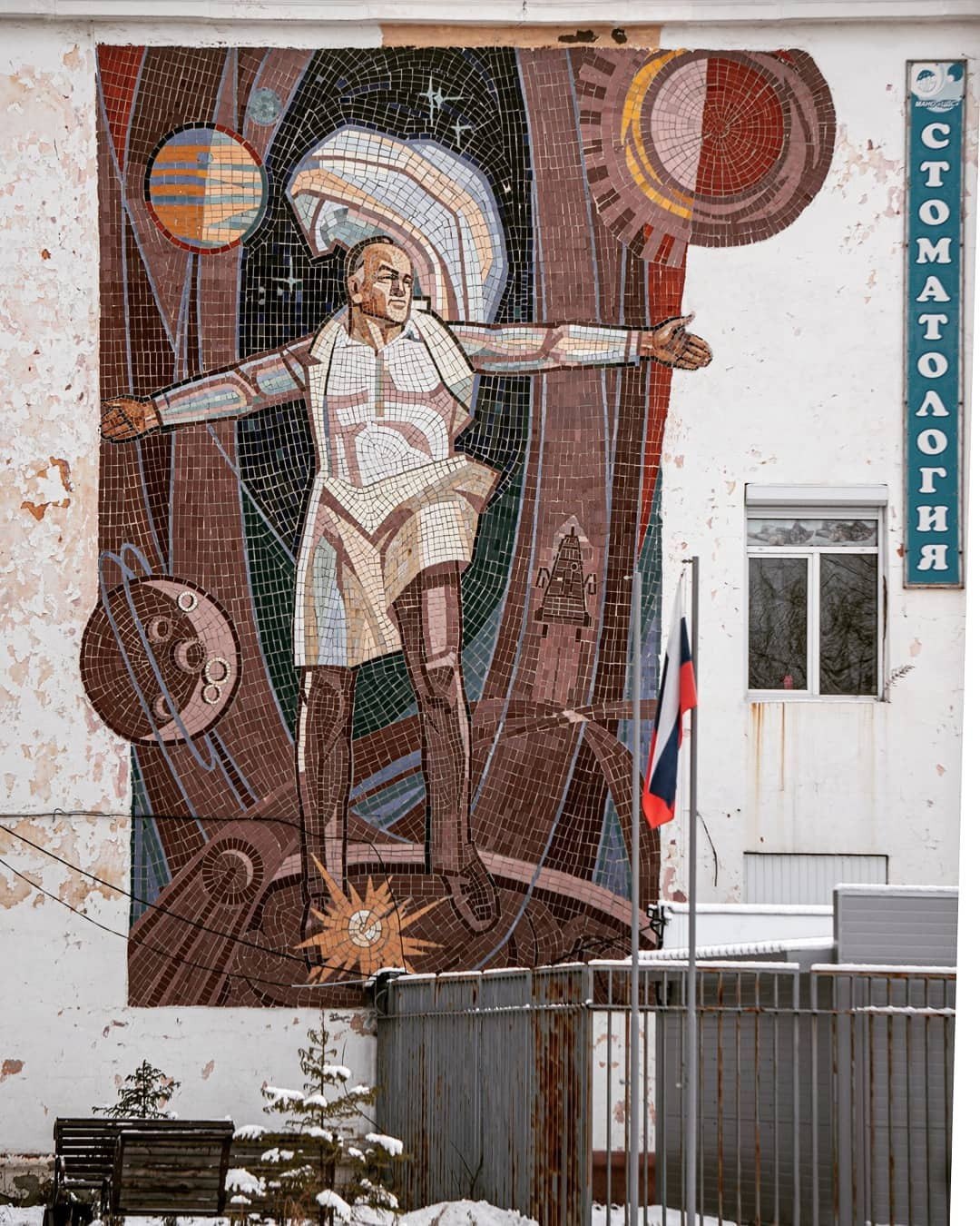 Впрочем, на формирование эстетики позднесоветской мозаики оказали влияние еще два важных фактора: полет Гагарина в космос и выдающийся мексиканский художник Давид Сикейрос.